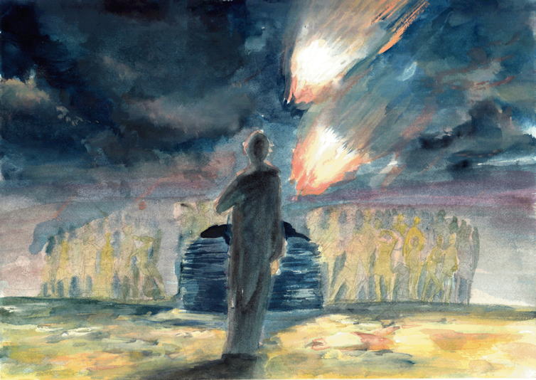 エリヤは危機(きき)の時代(じだい)(アハブ王が国をおさめていた、偶像崇拝(ぐうぞうすうはい)、神様の預言者(よげんしゃ)がころされる時代)に選(えら)ばれて恵(めぐ)まれ、つかわされた人でした。 神様がエリヤに「アハブに会いに行け。わたしはこの地に雨を降(ふ)らせよう。」と言われます(I列王18:1)。そのときは、3年間、雨が降(ふ)っていませんでした。 そこで、オバデヤをとおしてアハブ王に会い、いつわりの預言者(よげんしゃ)850人とエリヤひとりで、だれが本当の神様なのかをあきらかにしようと、戦い、勝利(しょうり)しました。 ![]() |
