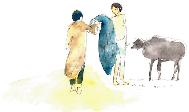 エリシャは、価値(かち)ある宝を見つけたのです。それで、12くびきの牛(1くびきに2頭の牛をつけるので、24頭の牛)を使って畑をたがやしていたのですが、すべてをすてて、エリヤについていきました。 エリシャは、エリヤに最後(さいご)までついていき、最高(さいこう)の価値(かち)である「霊(れい)の二つの分け前」をくださいと祈りました。 |