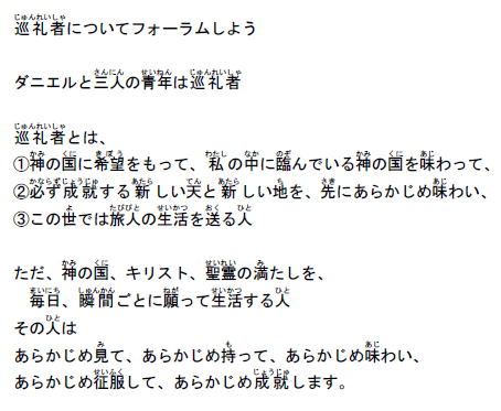 | 10月「神様に恵(めぐ)まれて、神様に用(もち)いられた人々(ひとびと)」 日本伝道(でんどう)集会の「のこった者(のこりの者)のいのり、巡礼者(じゅんれいしゃ)のいのり、征服者(せいふくしゃ)のいのり」を黙想(もくそう)しましょう |