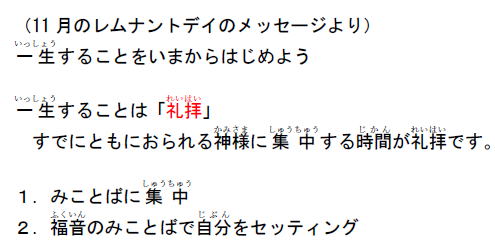 がくいんふくいんかメッセージ(10月18日) メッセージ、全文打ち出し翻訳(ほんやく) (wedarak.netより) |