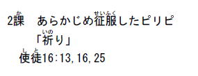 | 2課 あらかじめ せいふくした ピリピ(しと16:15) (パワーポイント) |