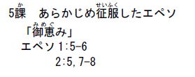 | 5課 あらかじめせいふくしたエペソ(しと19:20) |